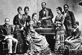 ジュビリー・シンガーズ(南北戦争後2) アメリカの黒人奴隷が教会を形成するというのは1860年の南北戦争における奴隷解放以後のことであると思われます。それまでは黒人霊歌ということで伝承されてますが、メロディはアフリカのオリジナルな歌謡ではなく、植民地文化のなかで展開していったものでした。「揺れよ幌馬車」はピューリタンの歌謡を保守的に引き継いでいますし、「ジョシュアの戦い」では中米のクレオール歌謡が取り上げられています。実際に奴隷解放後の教会で歌われたのはイギリスのワッツ氏の讃美歌であり、黒人霊歌は奴隷時代を思い起こさせるものとしてそれほど誇りとされなかったようです。黒人霊歌が見直されたのはジュビリー・シンガーズと言われる四重唱コーラスで歌われてからです。これはゴスペル・カルテットとは違い女性を含む一般的な讃美歌と同じ合唱方法で歌われました。ジュビリー・シンガーズで先鞭を切ったのは、黒人のための大学として初めて建設されたFisk大学の生徒により結成されたグループで、1871年の全米演奏旅行から始まり翌年にはロンドン公演でコンサートを開くなど、非常に好評をもって迎えられたということです。その後バリトン歌手がエディンバラに留学しクラシックの歌唱法を黒人の学校で教えることに執着しています。1877年にジュビリー・シンガーズの歌集が出版されると、その中に含まれる黒人霊歌が全米に知られるようになりました。1920年代からサクリファイド派教会がブルージーな曲想を展開するまでの50年間は、ジュビリー・シンガーズのスタイルが流行ったということになります。 この他に奴隷解放以前の黒人音楽のスタイルとしてミンストレル・ショーがあります。ミンストレル・ショーは黒人の真似を白人が行うコミック・ショーの体裁をもっていますが、実際は貧しい白人層が黒人から芸事を習ってはじめたとも言われます。白人にも黒人同様にブルースがあり、やはり鉱山や炭坑などの労働者が身を持ち崩して放浪芸に身を委ねるケースが多かったようです。18世紀でさえ雷の研究で有名なフランクリンが子供の頃にフィドルを弾いて歌っていると「バラッド売りみたいな真似をするな!」と父親からひどく怒られたと回想しています。それほどまでにアメリカの大衆音楽のなかでも底辺のものであったものが、第一次世界大戦後の東欧系の移民によってカントリー音楽として息を吹き返すのでした。最近は19世紀初頭までの音楽をコロニアル・ミュージック(植民地音楽?)としてジャンル分けした演奏も出ています。楽器もキー無しの管楽器やフィドルを交えて懐かしい音調で演奏します。じきにフォーク&トラッドの枠組を超えて、19世紀に作曲された讃美歌の唱法に影響を与えるのではないかと思います。 黒人の教会ではブルース・シンガーが酒場を中心に活動するため、一切の関係を絶つようなことも伝統的に行われてきました。ブルース掛かった歌謡が入ってくるのは戦前のサクリファイド派教会によるゴスペル・ソングのレコーディングによって広まり、戦後の護民権運動によって一般の教会に受け入れられていったものです。それまでは南部の黒人家庭のなかで伝えられるローカルな歌唱法であったと思われ、黒人のアイデンティティを誇示するよりも蔑まれる状況だったと推察されます。面白いことにこの地域の音律は極端にペンタトニックで鋭角的な感触さえあり、それがアフリカ起源なのかピューリタンの伝統なのかは判りにくいところです。ジャズの世界ではキー(和声)よりもモード(旋法)を基準にしたアドリブがメソッドとして先鋭化される一方で、現在のブラック・コンテンポラリー歌手はバラードに微妙なミーントーンを加えることで都会的なニュアンスを持たせているといえます。ちなみにモードに基づく変奏は初期バロックにも観られるもので、ジャズやバラードは西洋音楽の近代化のルールをなぞるように理解されていることも伺えます。 [←PREVIOUS] |