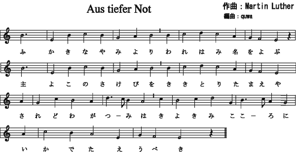 コラールのメロディに特徴的な音符を等価に並べる方法ですが、最近の曲集では比較的初版に近いかたちに戻して掲載する傾向が目立っています。これは宗教改革当時のコラールの歌謡性とダイナミズムを再現しようという試みですが、改めてドイツ・コラールの多様性に眼を見張る感じがします。特に16世紀前半と後半とでの書法の違いに驚きました。16世紀前半が中世歌謡の影響が強いのに対し、後半は既に初期バロックの近代調性の傾向が見えてきているからです。もともと等価に音符を並べる方法は16世紀末には定式化されたもので、最も有名なのはハスラーの作曲したメロディに受難の歌詞をつけた「血しおしたたる」です。多分、音符を等価に改めることで会衆のリズムが合わせやすくなることと、世俗曲の豊潤な感覚が抑えられることからきているようです。17世紀のコラール集ではほとんどのコラールが等価音符に換えられています。 ルネサンス期の記譜法については、既に14世紀のアルス・ノヴァという音楽理論書によって、現在のもののようにリズムを正確に記す決まり事(定量記譜法)ができました。にも関わらず、実際には慣習的にリズム形を省略された記譜法も残っていたようなのです。少なくとも修道院などで歌われていた聖歌は、定量記譜法以前の楽譜を使っていたことは確かです。ルターはコラールを作る際に、宮廷で用いる言い回しや新しい技法を用いずに民衆が歌いやすい平易な言葉で作るように留意したそうです。その平易な言葉に合った旋律は、等価のリズムに置き換えることだったのか、もしくは過去の聖歌を参考に記譜法を戻したのか、という疑問も残ります。定量記譜法ができる前の音楽の演奏については、いくつか自由な配慮が許されていて、最近ではロンドーとかヴィルレーという3拍子系の舞曲に合わせて歌われることが多いです。例えば讃美歌21でいうと37番や247番のようなものです。 蛇足ながらバッハの生きた18世紀は事情が複雑で、古いキリエライス終止を盛り込むコラールが散見されます。推察するにルター派正統主義の人たちの間で宗教改革初期の精神に戻ろうという動きもあったのかもしれません。同じ時期にヴェルクマイスターなどがオルガンの調律をミーントーンからピタゴラス音律に近いものに戻す提案をしており、バッハのフーガなどにはその影響がみられます。逆にバッハのコラール編曲は明らかにミーントーンでの解け合った雰囲気が合っています。ドイツにおけるミーントーンは16世紀末にプレトリウスの貢献により広範に行き渡ったものですが、世俗曲をルーツとするコラールには合っていますが、典礼歌をルーツとするものでは音が雲ってしまいます。ヴェルクマイスターがピタゴラス音律を選んだ背景には18世紀初頭に起きた古いコラールの復興と関係があるのではないかと思われます。 よく言われることですが、ルターは聖歌以外にも俗謡を宗教歌に塗り替えて会衆に歌わせたように言われます。これはボヘミヤ兄弟団が既にチェコの民衆に行なっていたことで、民謡の節に教理的な歌詞を歌わせると、学のない人でも瞬く間に聖書の教えを理解したようです。ドイツでの宗教改革が始まるとボヘミヤ兄弟団もこれに合流しそれまでチェコ語で書いていた讃美歌をドイツ語に書き換えて出版します。ドイツにおいても当時の娯楽を飲み尽くすほどにコラールは盛況だったようです。ビールも栄養ドリンクのように飲まれた時代ですから、酒場で歌われる猥雑な歌は民衆に馴染みのものでした。踊りに欠かせない音楽士の数は、異教的だという理由で街の出入りを制限されてました。そういう民衆が福音説教を通じて自らの救いを信じ、こぞってコラールを歌ったのです。ルターが1524年に出した「エルフルト提要」は家庭用の讃美歌集を含んでいました。カルヴァンの詩篇歌も農民の娯楽を一変させたと言います。現在の私たちが歌謡番組を見るかわりに、讃美歌を歌うということが考えられるでしょうか?実際に宗教改革者はそのように考えていたようなのです。 ◆現在におけるドイツ・コラールの受容 和声的コラールから旋律的コラールへ ・バッハ時代のコラール譜を基本に編集されていたのを宗教改革時代の譜面に直した ・フェルマータは息継ぎの記号として理解されるため省略した ・コラールの等価記譜法が、中世の記譜法の名残か、当時の会衆の歌唱力の問題かは不明 従来のコラール唱と異なる問題点 ・野外か礼拝堂かというシチュエーションを吟味する必要あり ・元になった歌が世俗曲か典礼歌かによって旋法の扱いが異なる ・日本語の語幹と整合性を持たせるには従来より技量が要る 歌唱上の注意 ・コラールのメロディを3拍子系に読替えて歌い、中世歌謡のスタイルを熟知する ・ジュネーヴ詩篇歌と同様に、単旋律のもつ響きの美しさを正しく理解する ・音符が等価に書き改められても、リズムと響きの柔軟性を保つように歌う ◆コラ